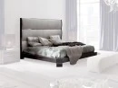 Ліжко з шпону капа тамос японського мока і глянцевого поліестеру. Узголів'я в шкірі. Ніжки та деталі з хромованої нержавіючої сталі.