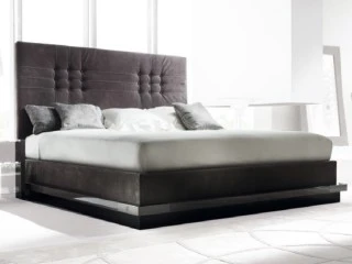 М'яке ліжко доступне з першокласної шкіри, шкіри нубуку, шкіри з принтом ящірки, оксамиту або замші. Структура в глянсовому лаку сірого поліестеру. Деталі з чорної нікелевої сталі зі вставками логотипу Giorgio Collection.