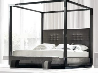 Ліжко з навісом "Мрія" доступне з першокласної шкіри, шкіри нубуку, шкіри з принтом ящірки, оксамиту або замші. Структура в глянсовому лаку сірого поліестеру. Деталі з чорної нікелевої сталі зі вставками логотипу Giorgio Collection.