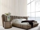 Повністю оббите ліжко з двома бічними крилами і підставою з бронзової латуні.