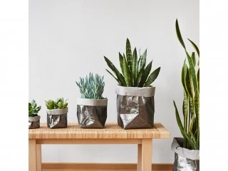 Ця середня версія сумки ідеально підходить для зберігання різних речей, таких як книги або журнали, але, на нашу думку, вона особливо приваблива для рослин. Сумка виготовлена з міцної, просоченої і миючої целюлози. Особливий виробничий процес робить її схожу на шкіру, оскільки папір розтягується і дубиться, що надає їй м'якість і міцність, що дозволяє витримувати прання.