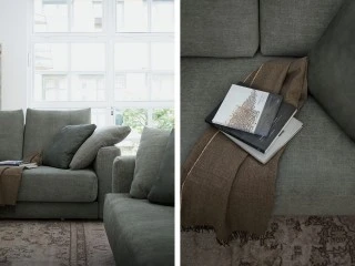 Ідеальне поєднання дивана і ліжка, PiazzaDuomo - це рішення проблеми нестачі місця без шкоди для сучасної елегантності. Нова концепція житла показує, наскільки легко перетворити вітальню в спальню, використовуючи не традиційний диван-ліжко, а диван, який кількома легкими рухами перетворюється в односпальне або двоспальне ліжко. Поверхня для сну забезпечена рейками і пружинним матрацом або матрацом Memoform. Підлокітники і сидіння покриті знімними чохлами з тканини, шкіри або екошкіри на застібках-липучках і доповнені трьома подушками зі знімними чохлами на блискавці.