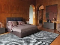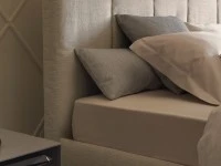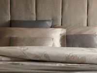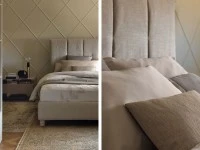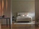 Ліжко в сучасному стилі. У нього високе узголів'я з м'якою оббивкою, прикрашене декоративними складками. Доступно з коробчатим пружинною основою Леонардо, фіксованою основою висотою 25 см, основою для зберігання або основою з електричними механізмами. Чохли повністю знімні та поставляються з тканини, шкіри або екошкіри. Чотири циліндричні ніжки можуть бути покриті тканиною, шкірою або екошкірою.