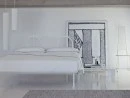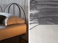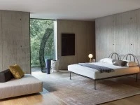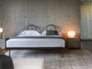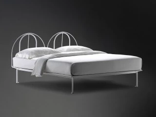 Ліжко з каркасом з лакованого алюмінію сірого або білого кольору для сучасного і стильного інтер'єру спальні. Узголів'я напівкруглої форми може бути доповнено знімним чохлом. База оснащена регульованими рейками.