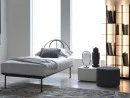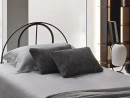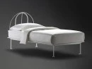 Ліжко з каркасом з лакованого алюмінію сірого або білого кольору для сучасного і стильного інтер'єру спальні. Узголів'я напівкруглої форми може бути доповнено знімним чохлом. База оснащена регульованими рейками.