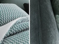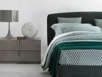 Елегантне і вишукане ліжко з м'якими узголів'ям і основою, з двома варіантами оббивки. Один варіант з повністю знімним чохлом з тканини, шкіри або екошкіри; інший виконаний з ексклюзивної і шикарної плетеної шкіри, майстерно обробленої, одноколірної або двокольорової чорно-білої з ромбоподібним малюнком.