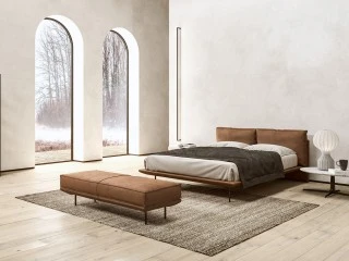 Непомітний каркас ліжка окреслює тонку лінію навколо ліжка, а узголів'є складається з двох великих м'яких подушок, що лежать на опорі. Каркас ліжка стоїть на тонких металевих ніжках, що створює відчуття повної легкості.