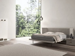 Ліжко Izy створює відчуття інтимності та індивідуальності за рахунок тонких бічних крил і геометричних ліній, що плавно складаються всередину.