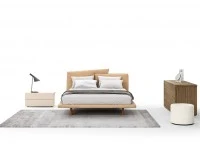Meeting - це м'яке ліжко з оригінальним динамічним дизайном. Його відмінною рисою є узголів'я, що складається з двох окремих трапецієподібних форм, доступних в одно- або двокольоровій версії. Доступні різні типи опор: полозки, металеві ніжки або прозора панель з метакрилата з додатковим світлодіодним підсвічуванням.