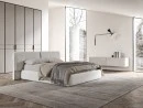Ковдра витончено розстелилась на ліжку. Уважний жест, який демонструє увагу. Лінії, які відрізняють ліжко Plaid, натхненні цим. Зігнуте, оббите узголів'я легко лягає на опору, а з боків – м'який квадратний каркас ліжка.