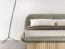 Це ліжко з унікальною лінією, доступне в двох різних версіях: м'яке і легке з опорою на ніжки; міцний і величний в зберіганні. Втоплена основа може бути покрита в тон ліжка або більш характерним деревом з ефектом смужок..