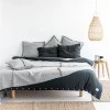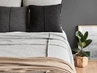 Покривало для двоспального ліжка виготовлено з трикотажної вовняної тканини. Простий дизайн і груба обробка роблять це покривало таким, що підходить для спалень, оформлених в різних стилях.