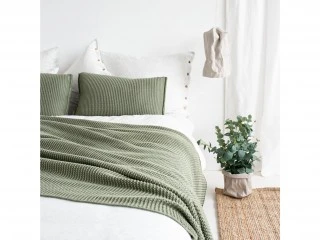Важке в'язане покривало з простим малюнком і приємним і м'яким відчуттям в руці. Воно ідеально підходить, щоб закутатися. Натуральна бавовна і кольори, натхненні природою, створять літній настрій у вашій спальні. Навіть якщо ви живете в місті, колекція SLOW MORNING принесе в ваш будинок спокій, і ви відчуєте, що перебуваєте у відпустці.