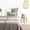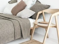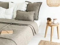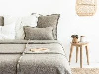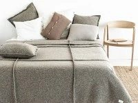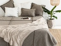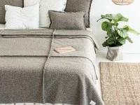 Покривало для двоспального ліжка виготовлено з трикотажної вовняної тканини. Простий дизайн і груба обробка роблять це покривало таким, що підходить для спалень, оформлених в різних стилях.