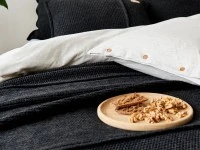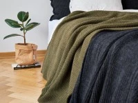 Покривало WOOLLY м'яке і затишне, як і ваш улюблений светр. Простий візерунок підкреслять красивим відтінком антрацитового меланжу. Тим, хто проводить багато часу в ліжку, сподобається той факт, що воно також може стати їхнім улюбленим покривалом максі-розміру, під яким з гарною книгою можна легко забути про решту світу. Покривало м'яке і приємне на дотик, а його м'ясиста текстура створює приємне тепло. Обережно! Є серйозний ризик залишитися в спальні на довгі години.