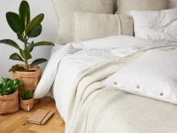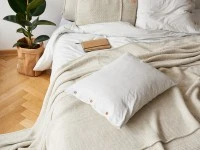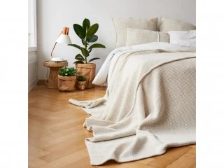 Покривало WOOLLY м'яке і затишне, як і ваш улюблений светр. Простий візерунок підкреслять красивим відтінком бежевого меланжу. Тим, хто проводить багато часу в ліжку, сподобається той факт, що воно також може стати їхнім улюбленим покривалом максі-розміру, під яким з гарною книгою можна легко забути про решту світу. Покривало м'яке і приємне на дотик, а його м'ясиста текстура створює приємне тепло. Обережно! Є серйозний ризик залишитися в спальні на довгі години.