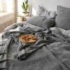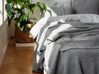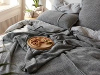 Покривало WOOLLY м'яке і затишне, як і ваш улюблений светр. Простий візерунок підкреслено красивим відтінком сірого меланжу. Тим, хто проводить багато часу в ліжку, сподобається той факт, що воно також може стати їхнім улюбленим покривалом максі-розміру, під яким з гарною книгою можна легко забути про решту світу. Покривало м'яке і приємне на дотик, а його м'ясиста текстура створює приємне тепло. Обережно! Є серйозний ризик залишитися в спальні на довгі години.