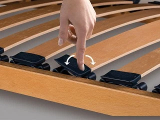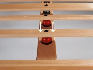 Каучукові рухливі опори рейок в поєднанні зі сферичними амортизаторами дозволяють опорній поверхні ідеально підлаштовуватися під форми тіла, сприяючи розслабленню м'язів і поліпшенню кровообігу, запобігаючи затікання в точках тиску.